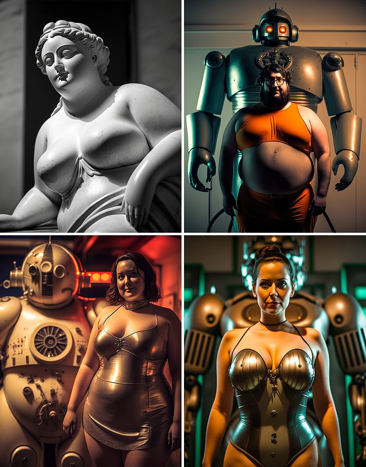 AI image engines have been roundly (and correctly) criticized for defaulting to over-sexualized bikini model stereotypes of women's bodies. But it doesn't have to be that way. Javier Lopez is proving that with the right prompts, AI can make people (and robots) that feel a bit more like the rest of us.