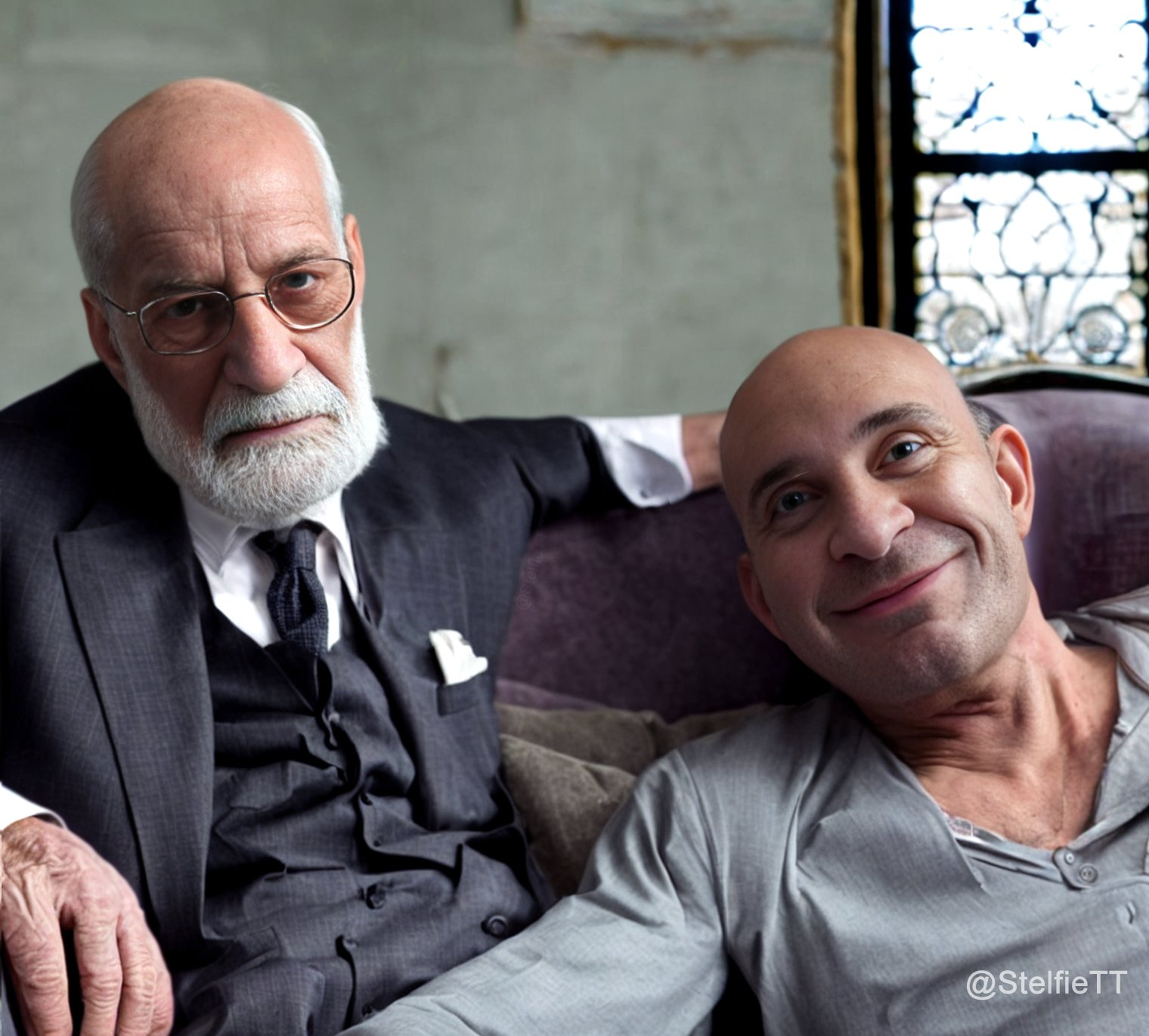 AI provocateur Stelfie the Time Traveler has taken this idea to its most absurd with a wildly entertaining series of synthographs showing him traveling through time, having beers with Shakespeare or a heart-to-heart with Freud.