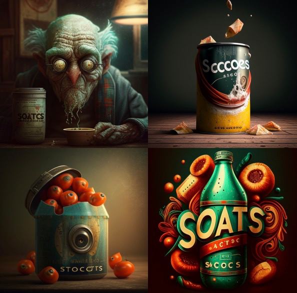 While trying to make portraits of the philosophical masters including Socrates, I accidentally typed "Socratoes." The AI seemed to think it was some type of new processed food product and in one case thought a zombie alien would be eating it.