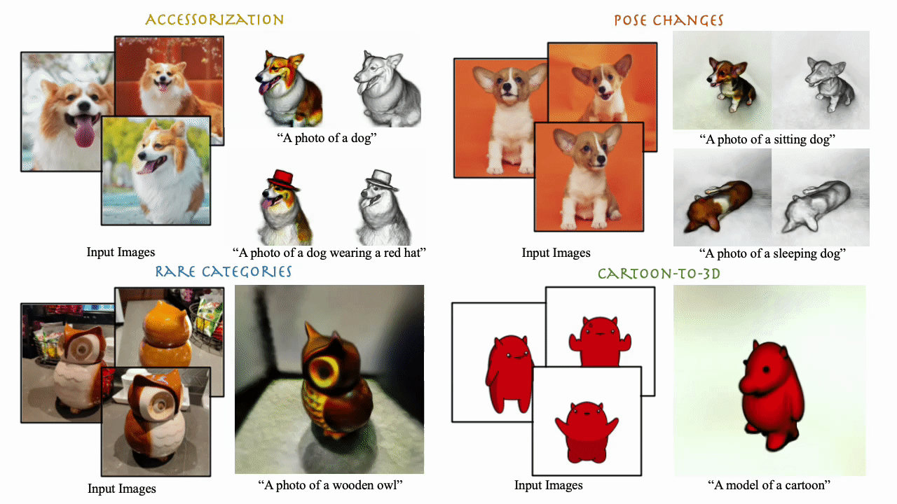 "We present DreamBooth3D, an approach to personalize text-to-3D generative models from as few as 3-6 casually captured images of a subject."